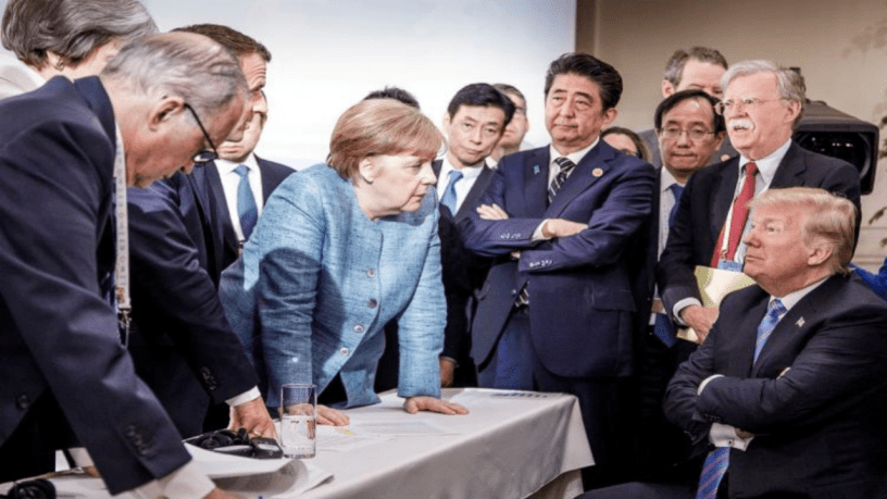 International Relations – Most of us has by now seen the widely circulating picture of world leaders confronting Trump on the second day of the G7 summit in Quebec, Canada, but exactly what it signals has become rather controversial. Those on the left side of politics, and in opposition to Trump think of it as a united front confronting a bully, whereas his proponents perceive it as an illustration of him standing up for American interests, and that America is the one in power. The summit itself, however, was far beyond mere signaling. He suddenly flipped completely on trade, advocated fully tariff-free trade between the countries attending, and threatened to cut off all trade with countries with ‘robbing’ the ‘piggy bank’ of the United States by means of tariffs. He also abruptly rejected the consensus statement, making a communique highly unlikely, and accused the host (Trudeau) of lying in a press conference after the summit. Though he still perceives everything to be going bliss between the countries, many of them have taken a different view.