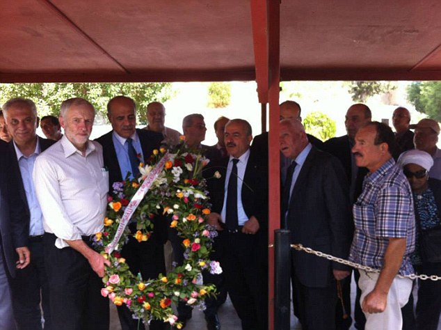 When the Daily Mail visited the cemetery last week, however, they found that the image above was taken 13 meters from the plaque commemorating those who died in the attack. Rather, they stood in front of plaque beside the graves of the founder and members of the Palestinian terrorist organization Black September, who was responsible for the assassination of the Jordanian Prime Minister Wasfi Al-Tal in 1971 and the murder of 11 Israeli athletes during the 1972 Summer Olympics in Munich, as well as various other attacks against Israeli and Jordanian officials between 1970 and 1973. The plaque commemorated Salah Kalaf, the founder of Black September, his key aide Fakhri al-Omari and Hayel Abdel-Hamid, PLO chief of security and close advisor to Khalaf. The three were shot in the home of Abdel-Hamid in Tunis in 1991. The intentions and background of the gunman have been left up to speculation, leading some to believe it was an Israeli agent from Mossad, the national intelligence agency of Israel, while others think was from a rival Palestinian faction such as the Abu Nidal Organization, whose leader was a bitter enemy of Mr Kalaf. Corbyn made clear in his article that he is a proponent for the former hypothesis, without a single time mentioning Black September or the Munich massacre.