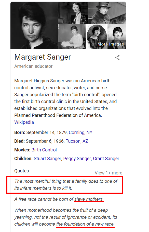 The truth is, Black lives are being lost everyday and it’s not by anyone else except Black people themselves. Abortion is literally taking the future away from black babies and the black community is engaging in this silent genocide called “Pro choice”. To me its clear what Margaret’s agenda was and it’s working till this day while masquerading itself as a way to ‘help woman’. In reality its a way to decrease the population, from what eugenicists believe are unworthy lives, and the fact is it’s affecting Hispanic American communities and Specifically Black American communities.